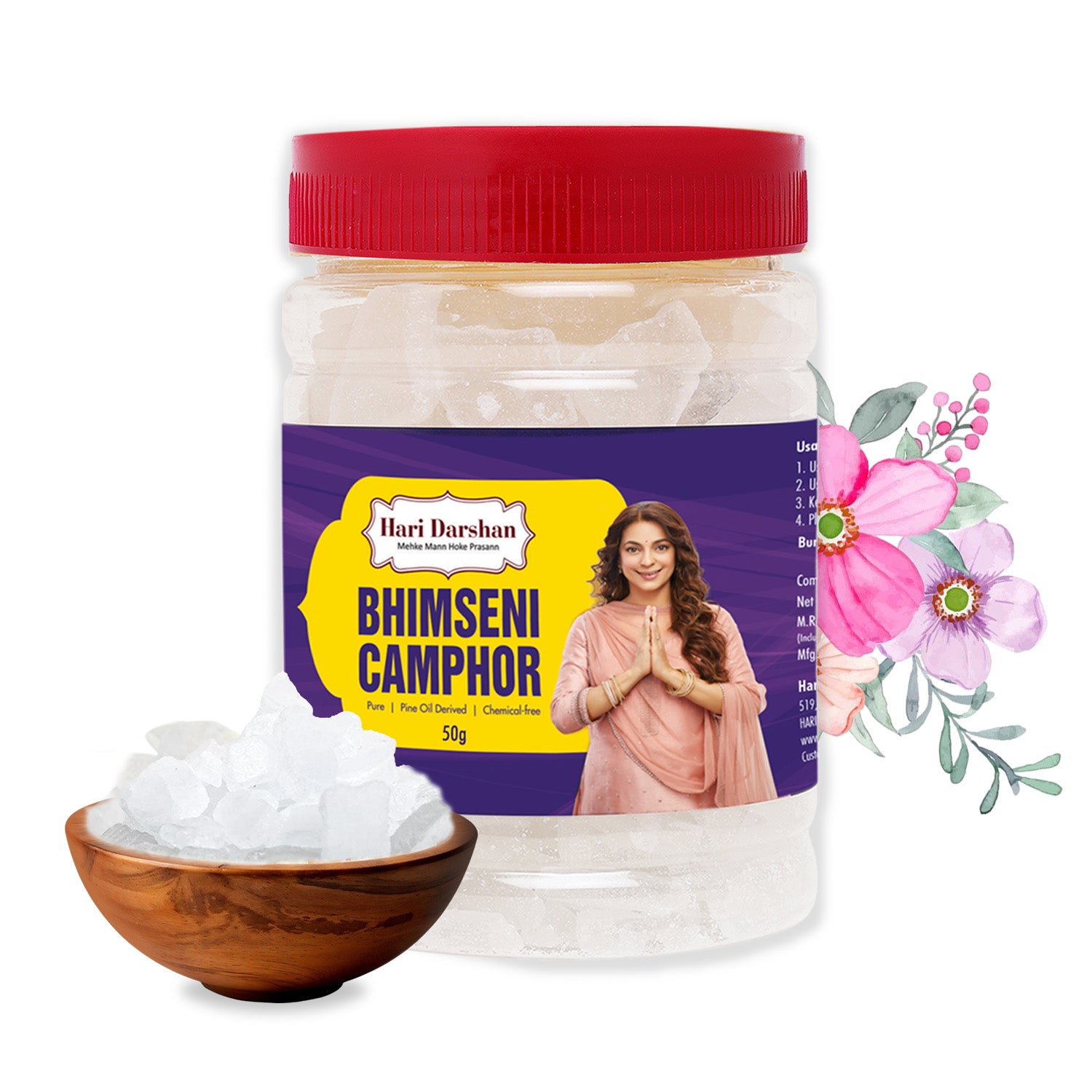 BHIMSENI CAMPHOR - Pure Kapur Crystals - For Pooja, Meditation, Havan or Room Freshener - Jar - 50g