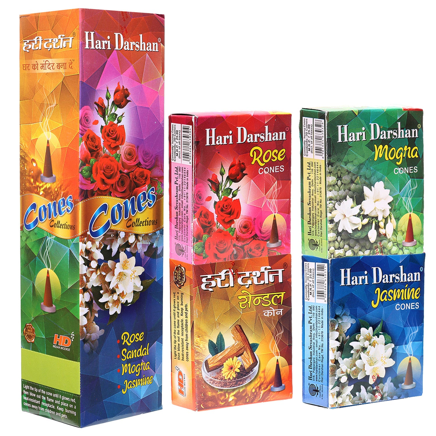 Mix Dhoop Cones - Rose, Mogra, Lavender & Sandal - 120 Cones in Each Jar