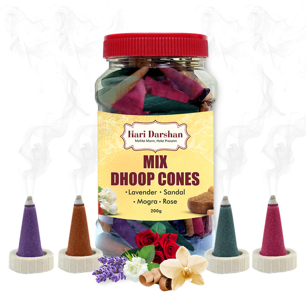 Mix Dhoop Cones - Rose, Mogra, Lavender & Sandal - 200gm Jar