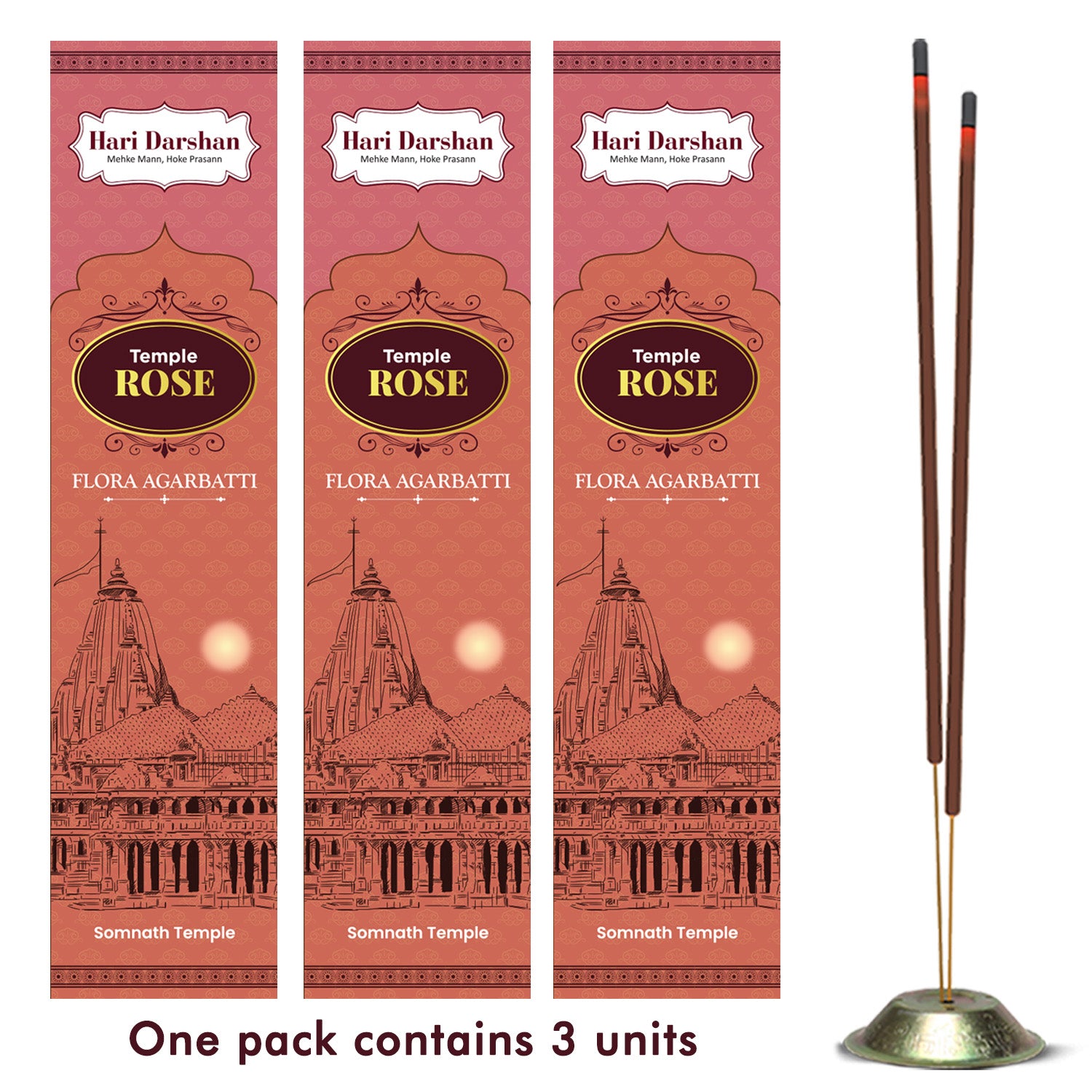 Temple ROSE Premium Flora Agarbatti - 12 Sticks in Each Pack