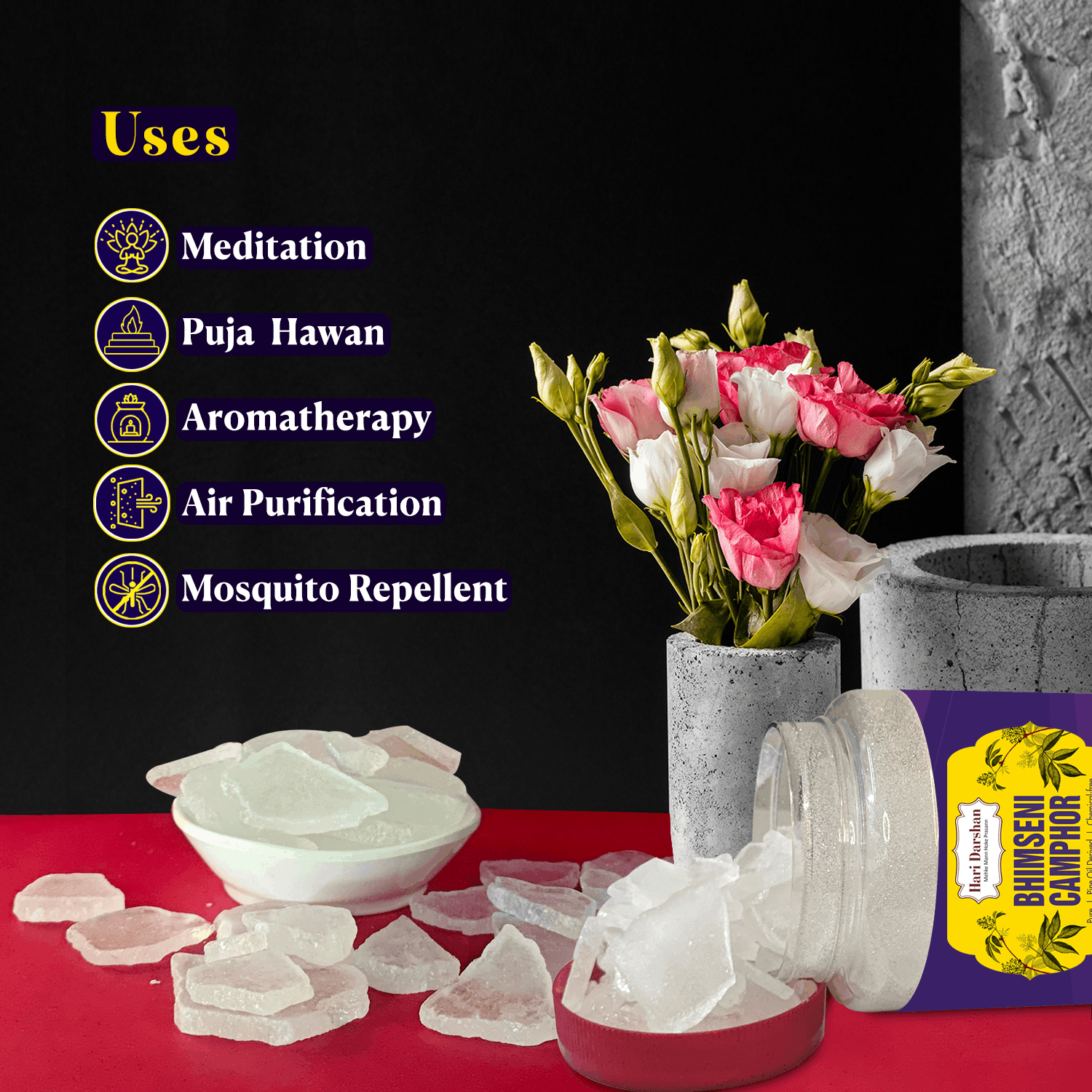 Pure Bhimseni Camphor - Pure Kapur crystals - For Pooja, Meditation, Havan or Room Freshener - 100g