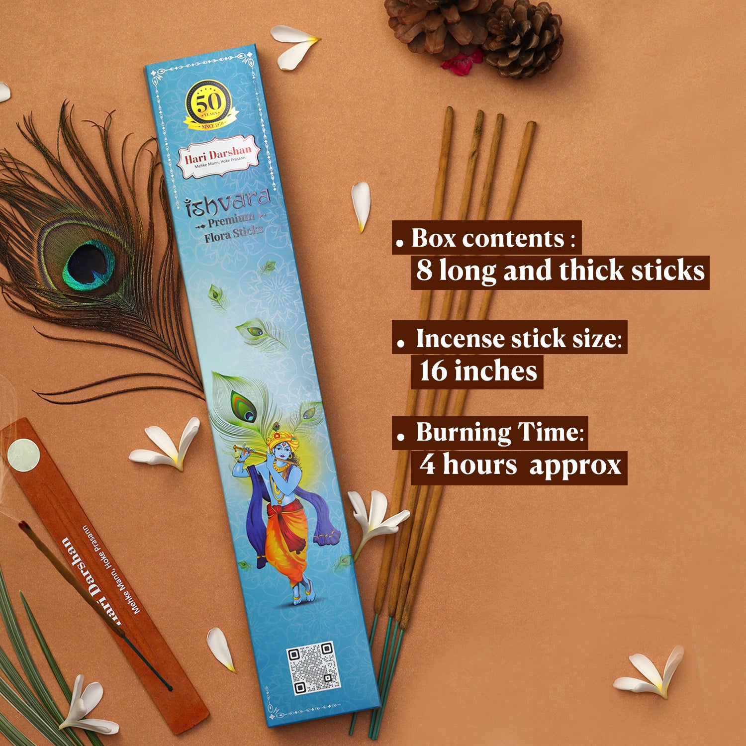 Hari Darshan Ishvara Flora Agarbatti is made of high-quality natural ingredients. In India, burning incense is about spreading positivity in all around areas, burning incense sticks is also a symbol of worshipping God and a symbol of peace and freshness.