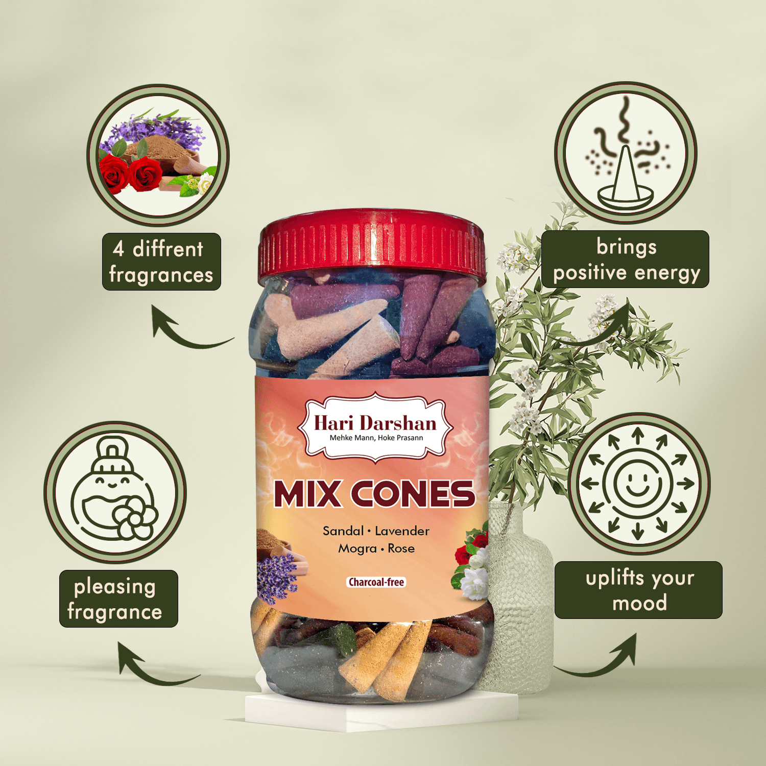 Mix Dhoop Cones - Rose, Mogra, Lavender & Sandal - 450gm Jar